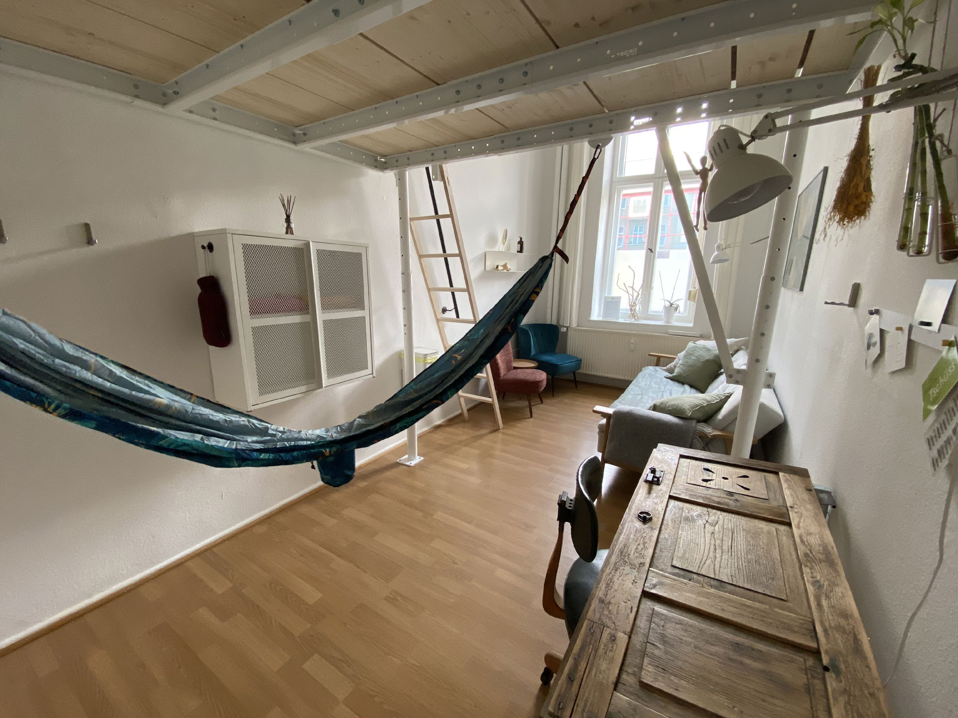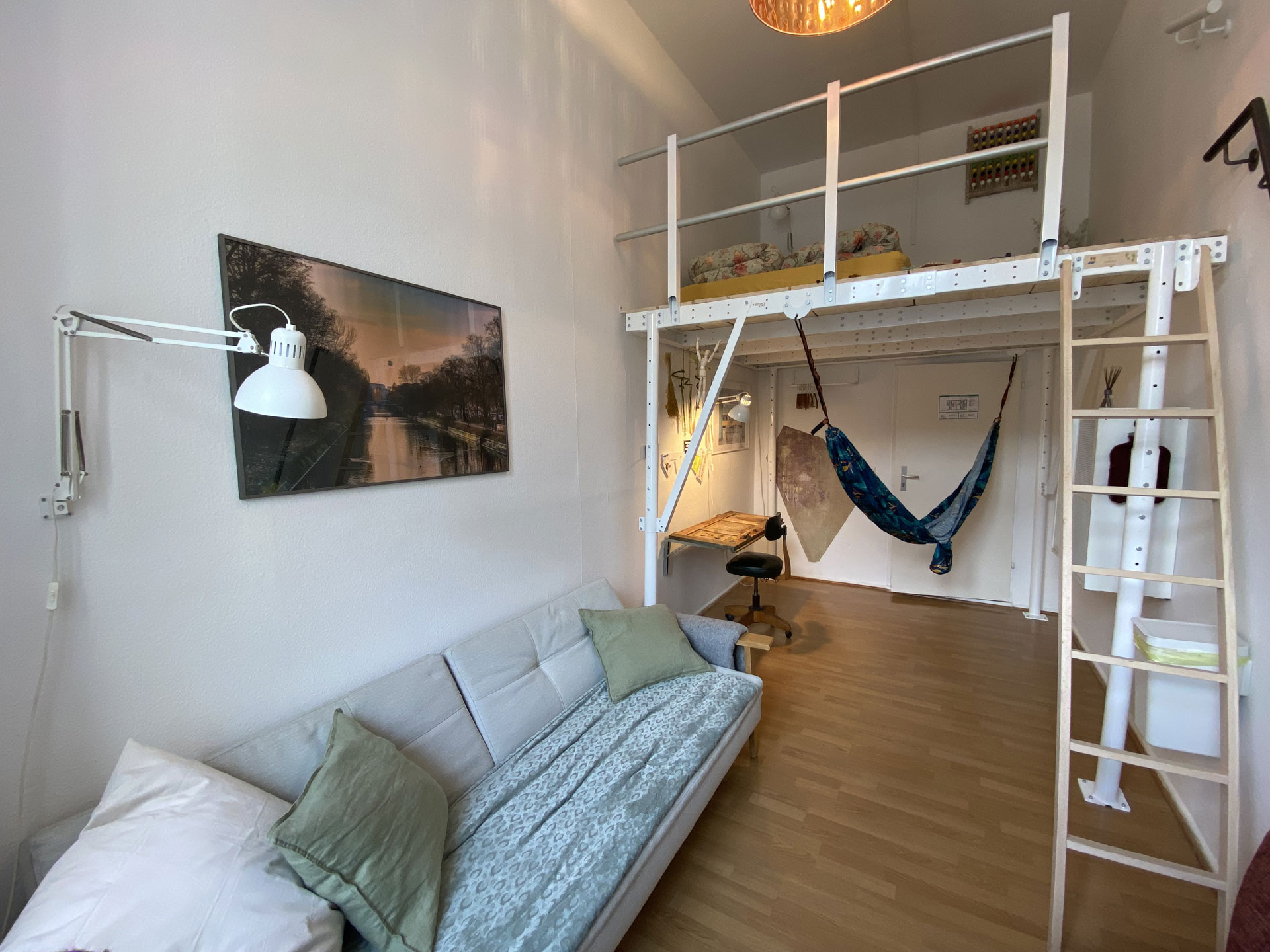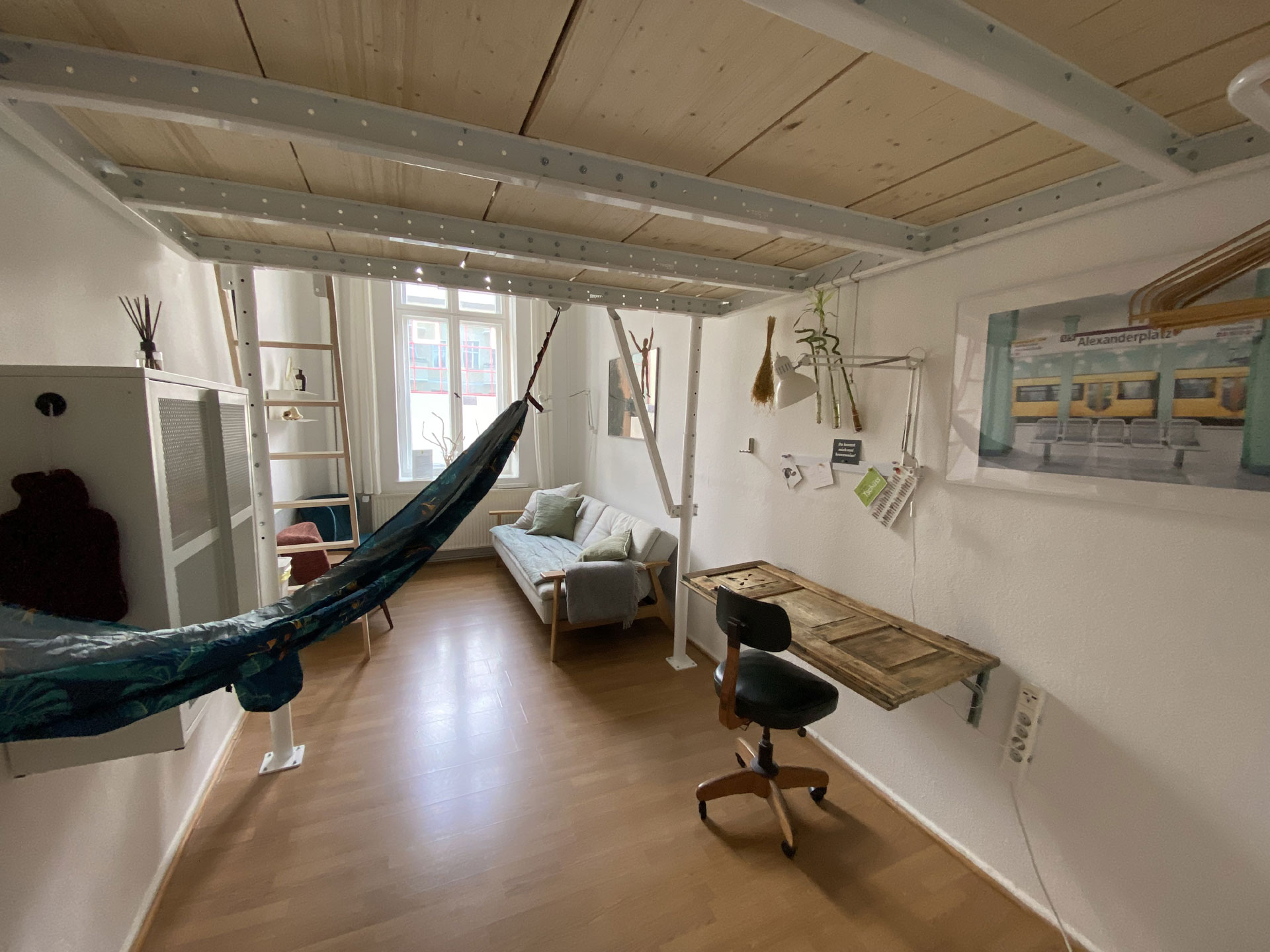 Loft Bed & Sofa ▷ Ein Doppelzimmer ✚ Möglichkeit einer Aufbettung. Somit ist hier Platz für bis zu 3 Personen ➥ Buche „Loft Bed & Sofa“ im Kiez Hostel Berlin ✅