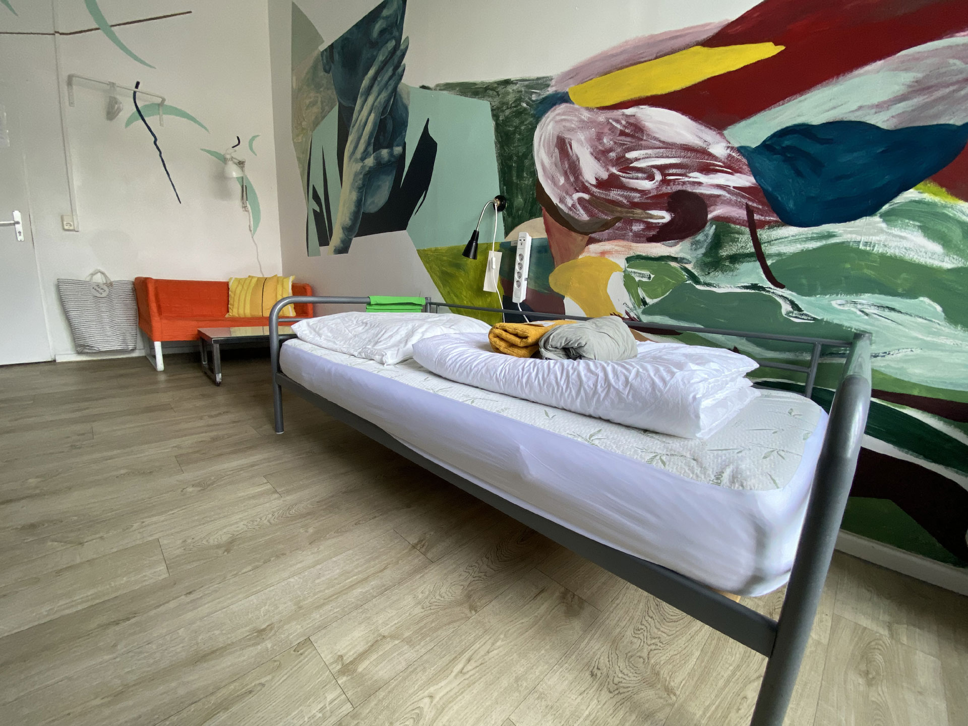 Mens World Room ▷ Mehrbettzimmer für Männer ✚ Sitzecke. Hier können bis zu 5 Personen bequem & günstig übernachten ➥ Buche „Mens World Room“ im Kiez Hostel Berlin ✅